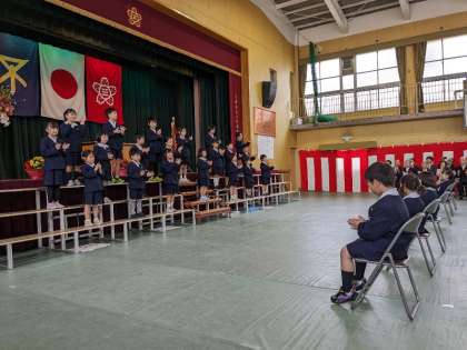 2年生が歓迎のお祝いに、学校での様子を新入生に伝えてくれました。