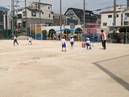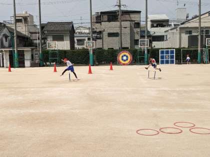 4月15日(月)、2年生が体育を行っていました。体つくりのため、サーキットをしています。