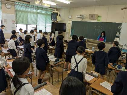 4月18日(木)、4年生は音楽科「いいことありそう」をリズムにのって歌っていました。