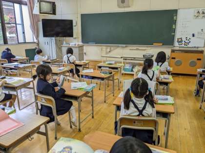 4月18日(木)、1年生は課題提出後、読書をしています。