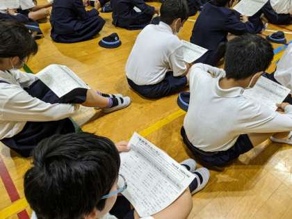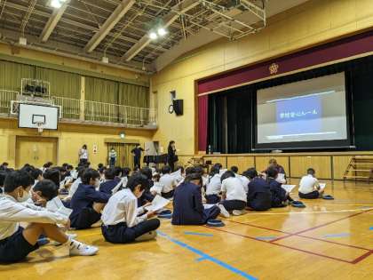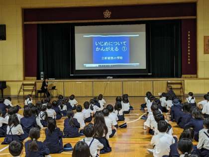 5月13日(月)、児童朝会で、「いじめについて考える日」「いのちについて考える日」について校長より講話がありました。