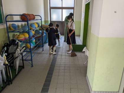 5月16日(木)、三西では掃除の時間、たてわり清掃をしています。6年生がリーダーとなって班をまとめています。