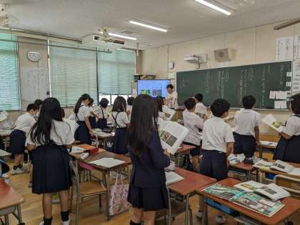 5月20日(月)、3年生の国語科です。音読をしていました。