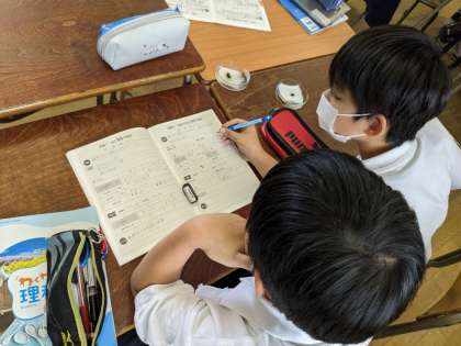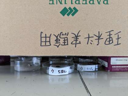 5月20日(月)、5年生の理科です。発芽ついて、日光がいるのか、空気は?など考える学習しました。教室では日光が当たらない中の実験をしています。