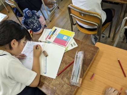 5月21日(火)、4年生の算数科の様子です。「3けたわる1けたの筆算のしかた」について学習していました。