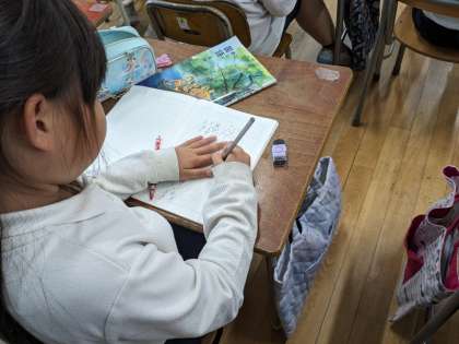 5月22日(水)、3年生は国語科で「自然のかくし絵」を学習していました。