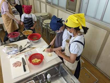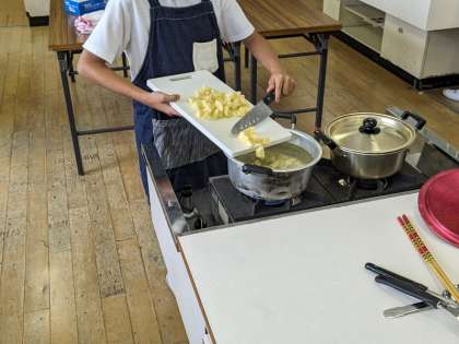 5月31日(金)、5年生は、家庭科室で調理実習をしました。「ポテトサラダ」を作りました。