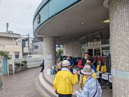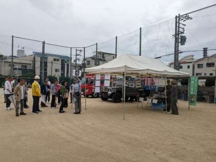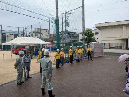 6月9日(日)、運動場、講堂では地域が防災訓練をしていました。