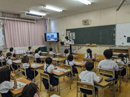 6月13日(木)、1年生で栄養指導がありました。「きゅうしょくはかせになろう」をめあてに給食に関わる人や道具について学びました。
