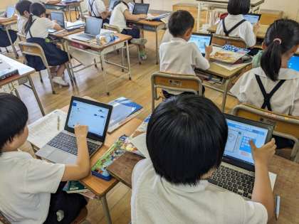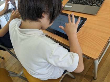 7月3日(水)、2年生はタブレットを活用した学習をしていました。漢字の練習をしています。