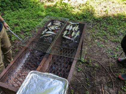 12:40魚つかみが終わりました。魚もいい感じに焼いていただきました。