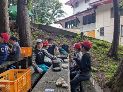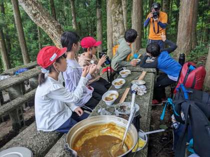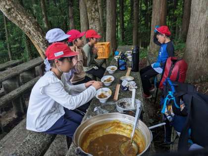 カレーライスが出来ました。それぞれの班が協力して作ったのでとっても美味しいです。
