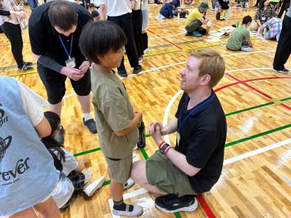 8月1日(木)、中之島小中一貫校の体育館で、5・6年生向けの英語体験イベント「イングリッシュデイ」がありました。