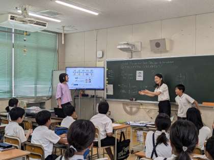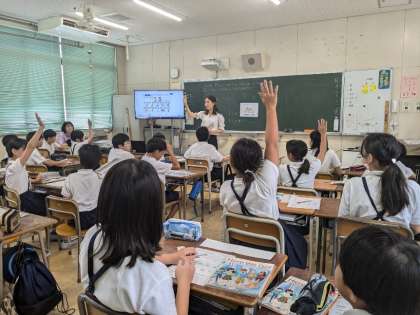 9月3日(火)、5年生では外国語科を学習しました。「Can you〜?」で、できることやできないことをたずね合いました。先生に質問をしています。