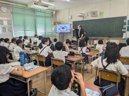 9月27日(金)、4年生は外国語の学習をしていました。金曜日はC-NETの先生が来てくださっています。