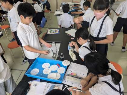 9月27日(金)、6年生は理科の学習で、リトマス紙を使った実験をしていました。