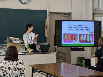 10月16日(水)の給食試食会を行いました。保護者の方が参加し、子どもたちが食べている給食について、栄養教諭からの講話を聞きました。低、中、高、中学でパンの大きさが違う事にびっくりしていました。