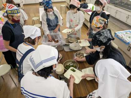小学校時代を思い出し、皆で用意をしたあと「いただきます」をしました。