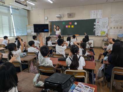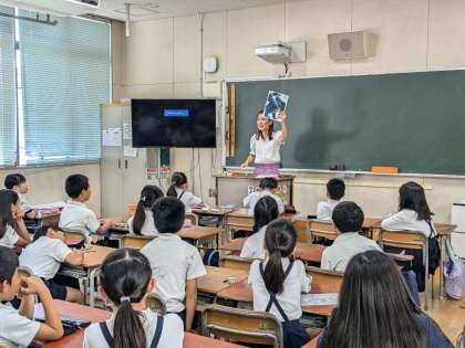 10月17日(木)、3年生で英語専科の先生より、英語の絵本の読み聞かせやアクティビティの授業を受けました。