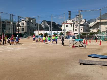 10月17日(木)、5年生は走る練習をしていました。バトン受渡しが大事ですね。
