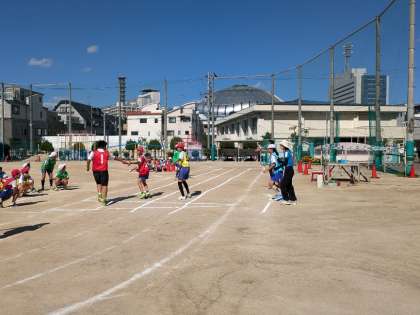 10月21日(月)、6年生の運動会の練習風景です。リレーを行っていました。