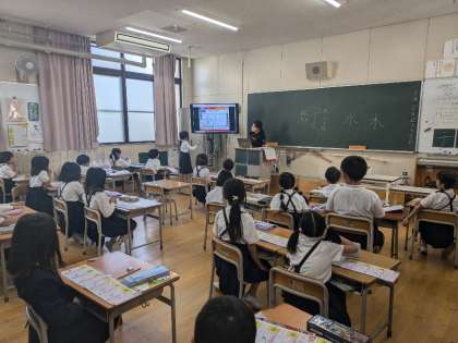 10月25日(金)、1年生は国語科で漢字の学習をしていました。気づいた事を画面を使って発表しています。