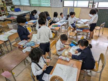 10月30日(水)、2年生は明日1年生を招待するおもちゃランドの準備をしていました。