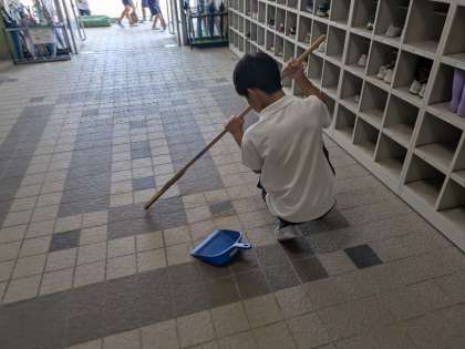 11月1日(金)、縦割り清掃。5年生の遠足や担当の先生たちがいなくてもしっかり掃除を行っていました。