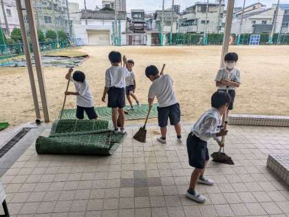 11月1日(金)、縦割り清掃。5年生の遠足や担当の先生たちがいなくてもしっかり掃除を行っていました。