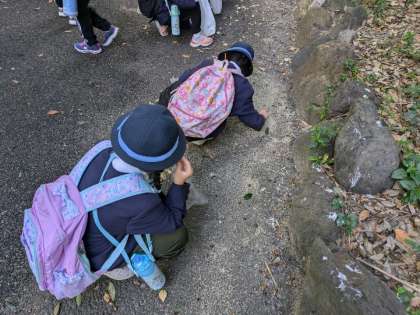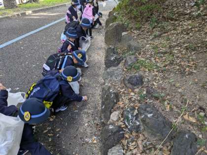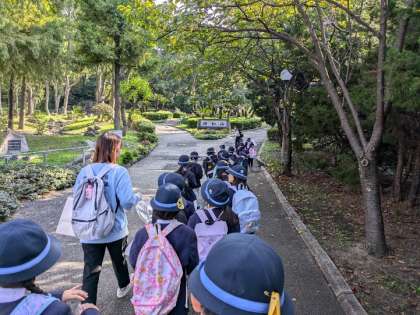 11月11日(月)、1年生、千島公園着きました。どんぐり拾い始めます。