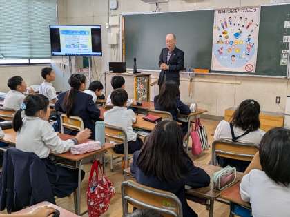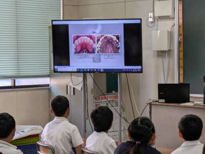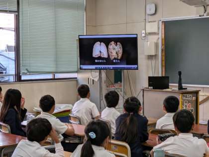 11月11日(月)、3年生では、出前授業て「たばこの害」の話を聞きました。たばこを吸うと、歯や肺に影響がありますね。