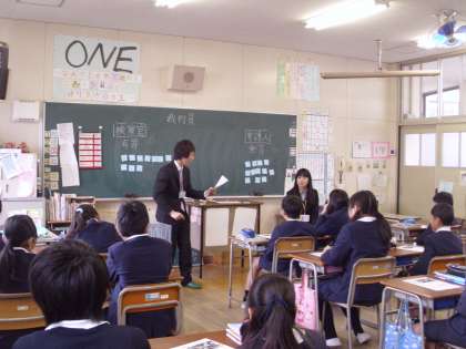 午前中、小学校の授業の様子を見ていただいた後は、6年生の教室で社会科の出前授業をしていただきました。