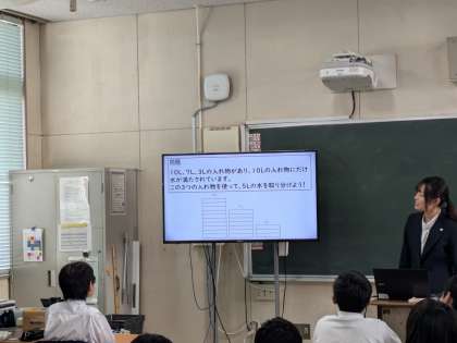 11月21日(木)、6年生は小中連携の取組みとして、大正東中学校より数学の先生からの出前授業を受けました。子どもたちは、試行錯誤しながら問題を解いていました。
