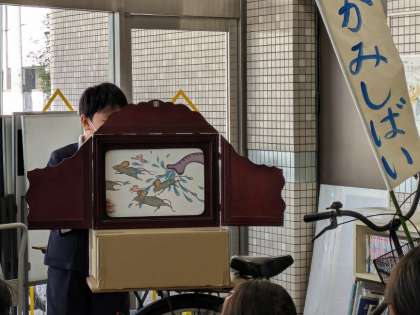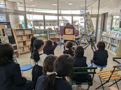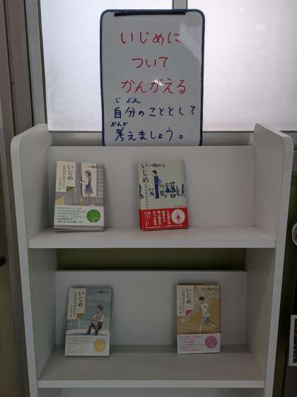 校長室前には、いじめ関連の本。今日は昼休み紙芝居がありました。