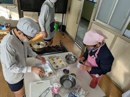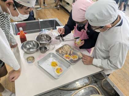 12月10日(火)、6年生は調理実習をしています。各班で作る物が違うようです。