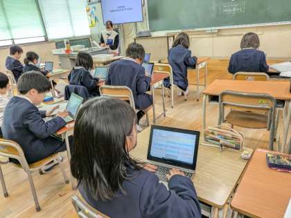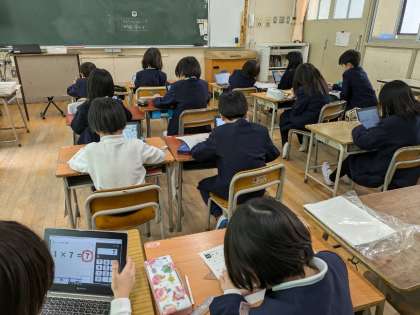 1月9日(木)、始業式後の学級での様子です。早速、授業が始まっています。