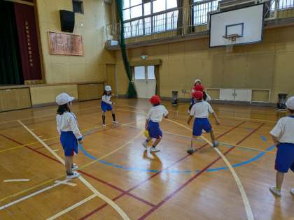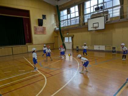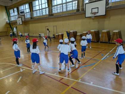1月17日(金)、1年生は体育科でボール投げゲームを行っていました。