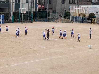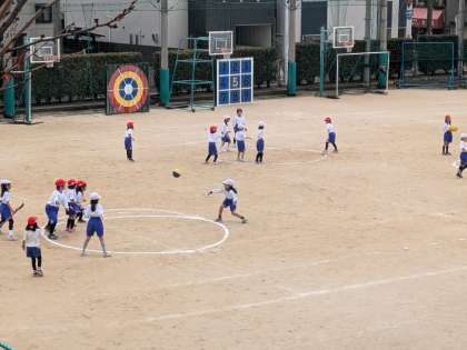 2月3日(月)、1年生は体育科でボール投げゲームをしていました。