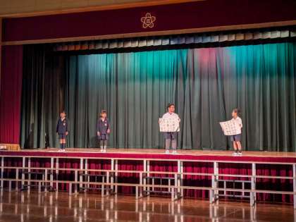 2月12日(水)、1年生が学習発表会の練習をしていました。