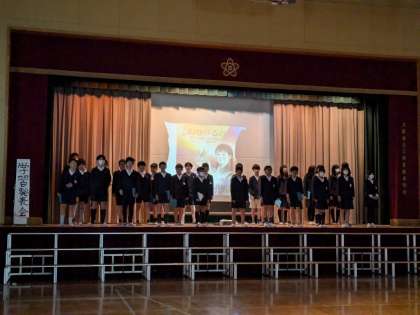 2月13日(木)、6年生が学習発表会の練習をしていました。