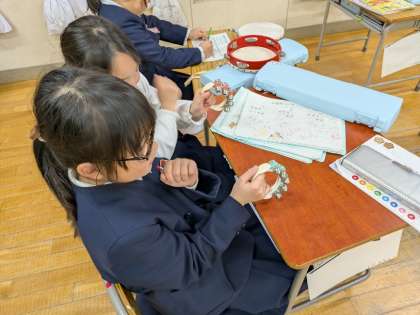 3月10日(月)、1年生は音楽に取組んでいました。自分たちで話し合ってどのように演奏するか考えています。