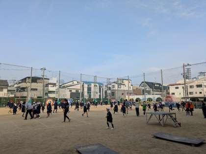 3月13日(木)、児童集会を運動場でしました。春の暖かさがあり気持ちよかったですね。6年生と最後の集会です。鬼ごっこをしました。