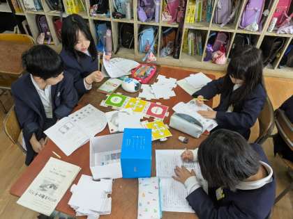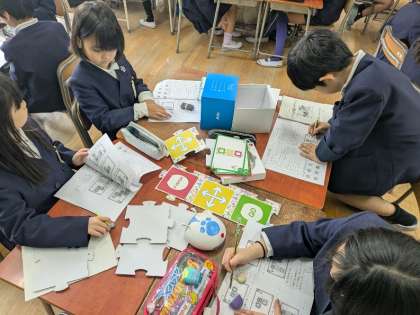 3月14日(金)、3年生はプログラミング的思考が身につく知育ロボット「アリロ」を使って、班で協力してプログラミングしていました。