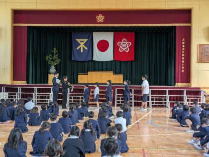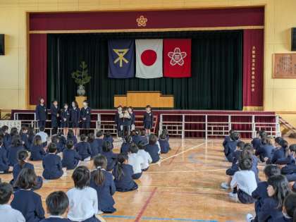 3月21日(金)、修了式がありました。三学期に頑張った事を代表児童が発表し、各学年代表に修了証を渡しました。
