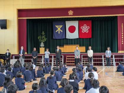 3月21日(金)、修了式のあと、3月末で本校を去られる予定の教職員を紹介しました。