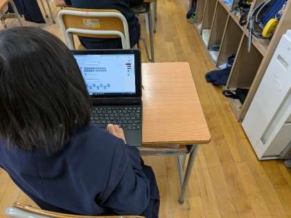 3月21日(金)、1年生は、タブレットで1年の振り返り学習に取組んでいました。