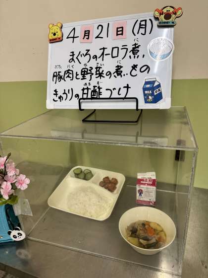 です。まぐろのオーロラ煮ファンの子は待望のメニューですね。