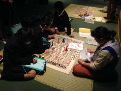 ボランティアの方と、昔の大阪のことをクイズで教えていただきながら双六をしているグループもあり楽しく学ぶことができました。