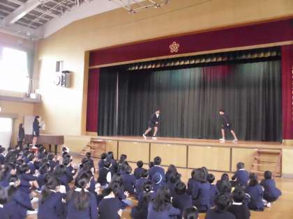 集会委員さんの動きに合わせて、みんなが拍手をします。
