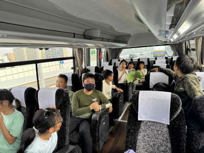 車内では早くもカラオケ大会が始まっています。